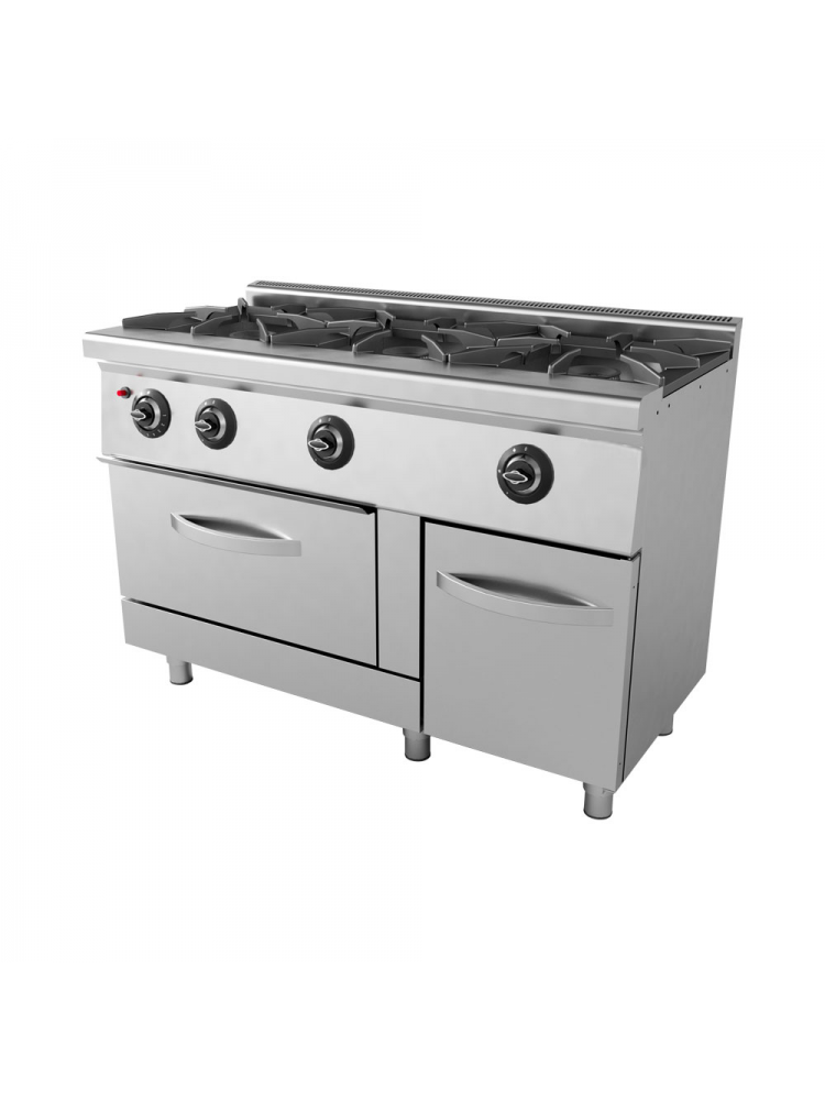 Material construído em aço inoxidável, torneiras com válvula de segurança magnética, queimadores em ferro fundido, capacidade de trabalhar com gás GPL e NG.